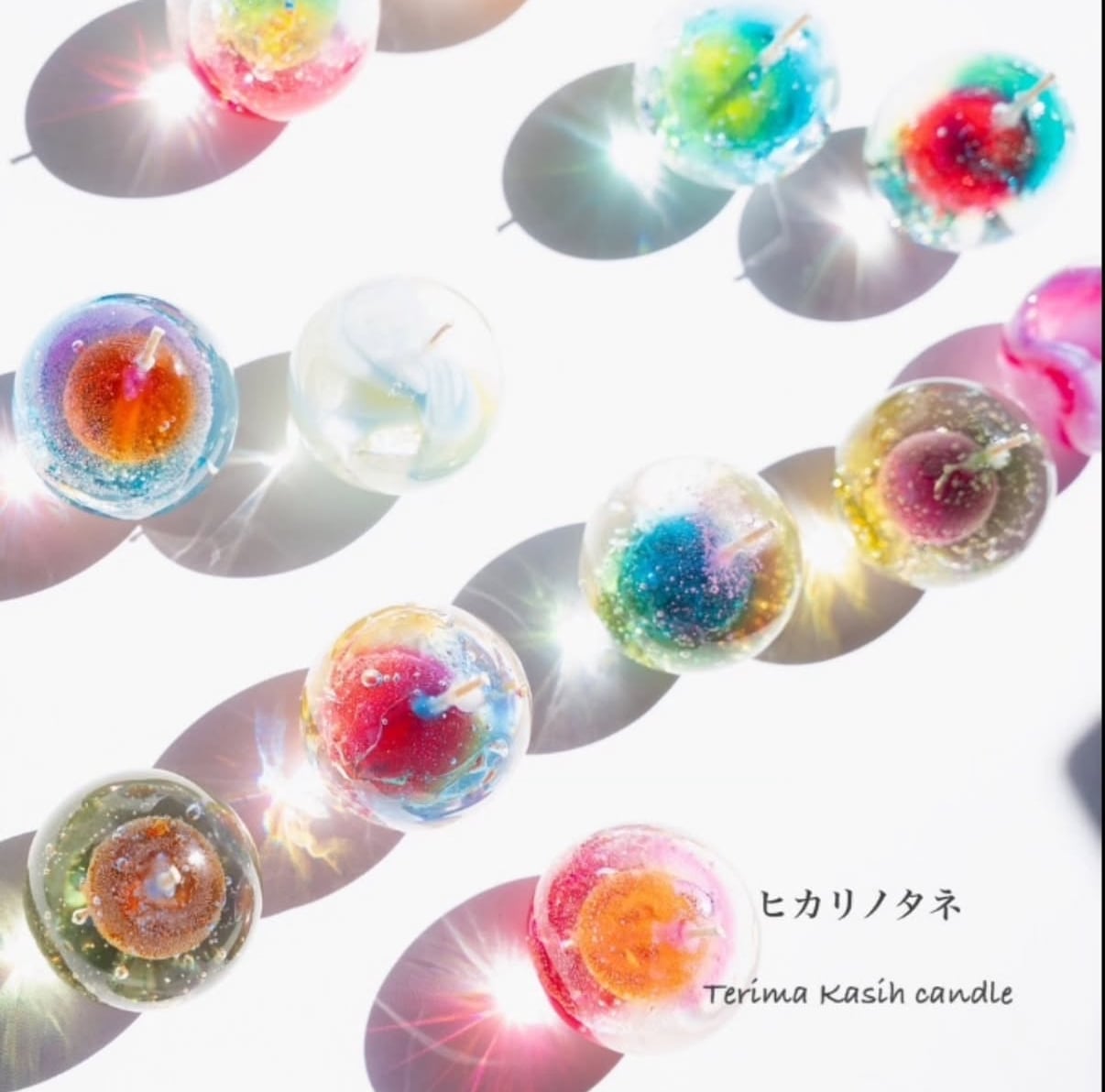 ・【ヒカリノタネ】がひとりひとりの灯りとなって、幸せを感じられるタネとなり、世界中へあたたかい花を咲かせに飛んでってほしいという願いからできたキャンドル。 ・ジェルキャンドル(むにゅむにゅなろうそく)とは、透明なジェルワックスを使って作られた、ゼリーのような見た目のキャンドルです。 ・一般的なキャンドルと異なり、透明度が高く、火を灯しても幻想的な雰囲気を演出できます。 ・お部屋のインテリアとしても人気です。 ・ご自身用にも、大切な方への贈り物としても最適です。 ・直径5cmほどのまんまるジェルキャンドルです。 ・燃焼時間:15時間ほど。 ・ひとつひとつハンドメイドのため、写真とお色が多少異なる場合がありますが、ご了承くださいますようお願い致します。 ・初期点火の際、火が安定するまでは何度か消える場合がございます。 何度か着火すると安定します。 ・ススが出にくい着色料を使用しておりますが、日当たりの良い場所では退色しやすいので、日陰での保管・管理をおススメします。 ・色移りしやすいので、置く場所にはお気をつけてください。 ・必ず燃えない素材の受け皿等を敷いてご使用ください。 ・日にちが経つにつれ、変形・変色する可能性がありますので、ご理解・ご了承のうえ、お早めにご使用ください。 ・キャンセルや返品・交換はお受けできません。ご了承くださいますようお願い致します。