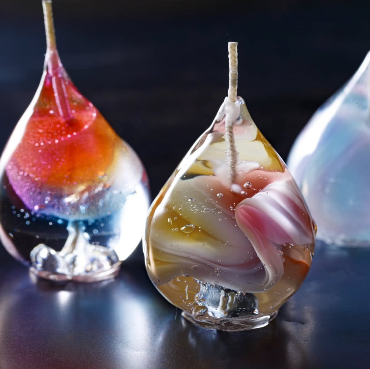 ・【雫】は雫型をしたジェルキャンドル。作家さんが商標登録も取られている唯一無二のキャンドルです。